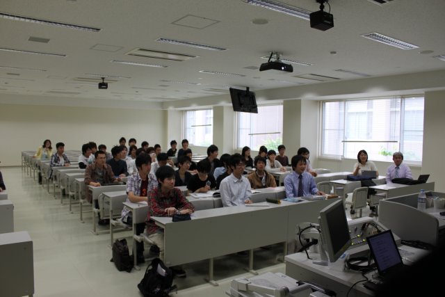 田村先生の研究室の学生の方々だけかと思いきや、情報理工学部の他の研究室の皆さんも集まって下さり、40人を超える方の前でお話しさせて頂くことが出来ました!