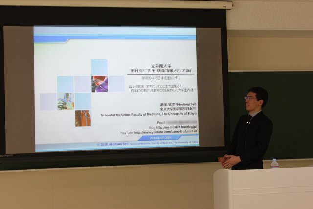 今年の3月20日にサイエンス映像学会に招待されて講演をした際に僕の講演を聞いて下さっていた立命館大学の田村秀行先生に声をかけて頂き、今回素晴らしい機会を頂けることになりました。